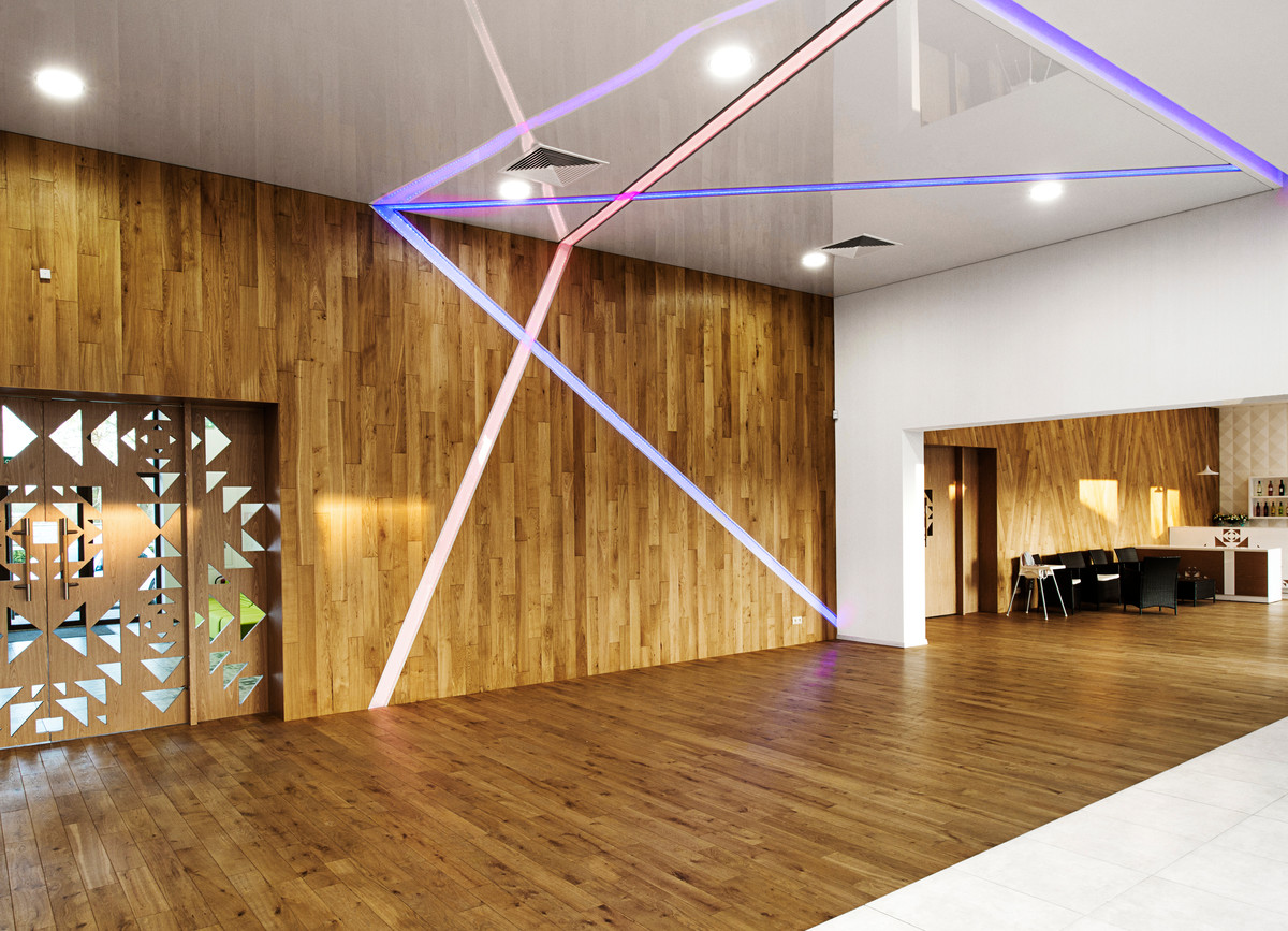 In this case, the banquet hall can be adapted for official receptions, business meetings or family celebrations that include dancing. The right choice of lighting and the possibility of switching it on independently in different combinations allow you to adapt it to the circumstances.