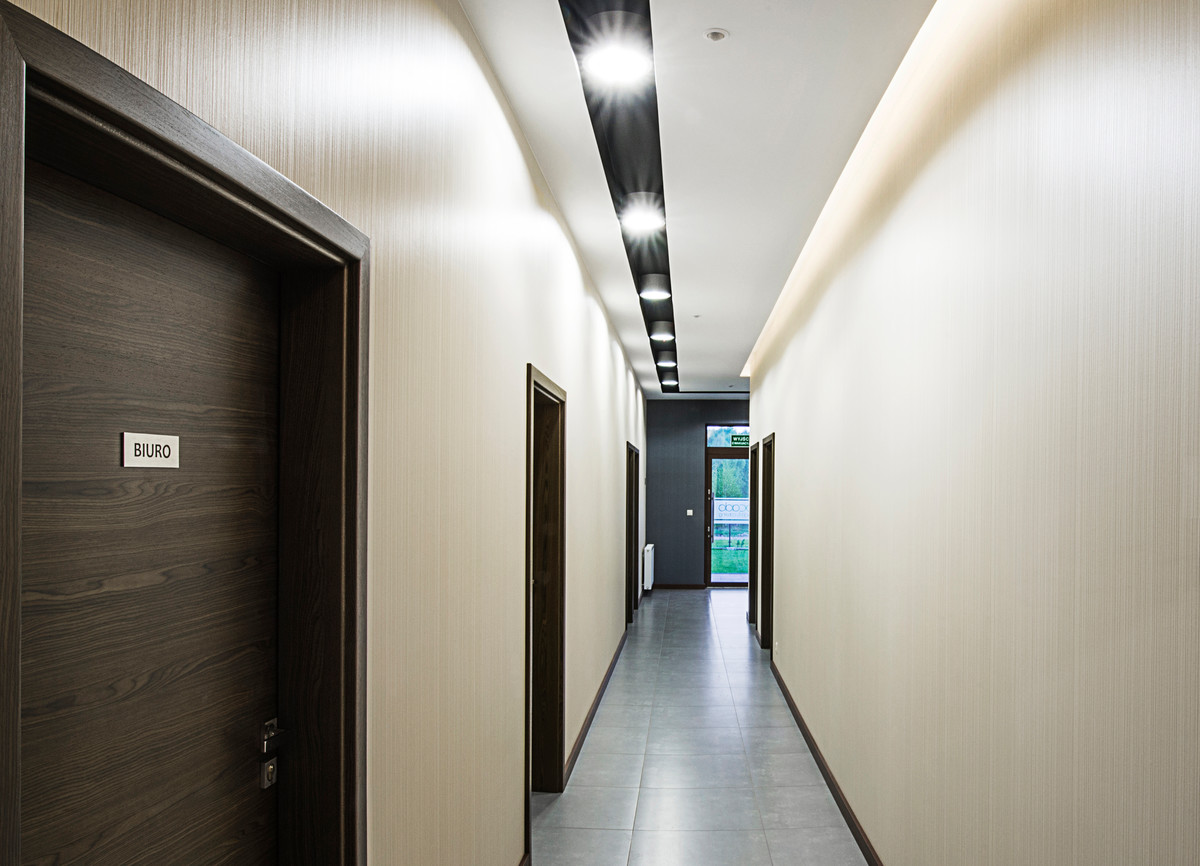 Brighter lighting has been incorporated into the design of the passageways to make it easier for guests to move around the building. In case of a corridor, the passage is lit by Kanlux MAYOR luminaire. An alternative solution is to choose a newer generation lamp like Kanlux OMERIS N LED. Attractive design, modern construction and easy assembly are its main advantages. The fitting is made of white painted aluminium. Thanks to its modern design, it perfectly fits both residential interiors and commercial gastronomic and hotel areas.