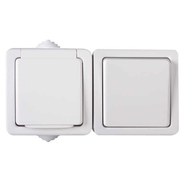 Однополюсный выключатель и французское гнездо питания с защитой контактов TEKNO